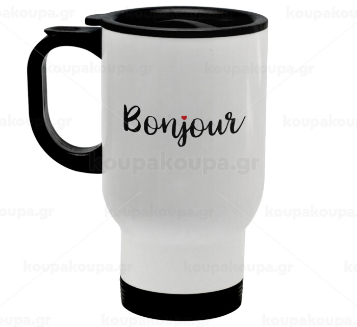 Bonjour, Stainless steel travel mug with lid, double wall white 450ml