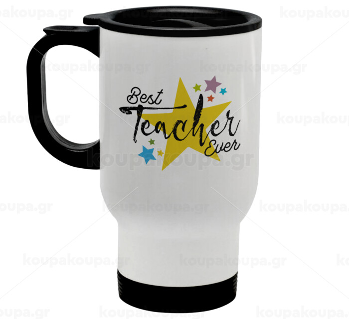 Teacher super star!!!, Stainless steel travel mug with lid, double wall white 450ml
