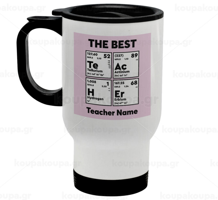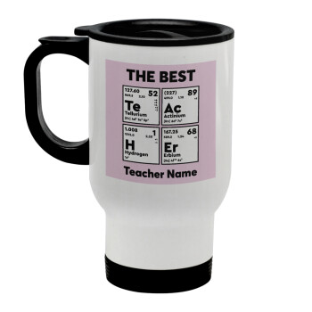 THE BEST Teacher chemical symbols, Stainless steel travel mug with lid, double wall white 450ml