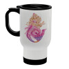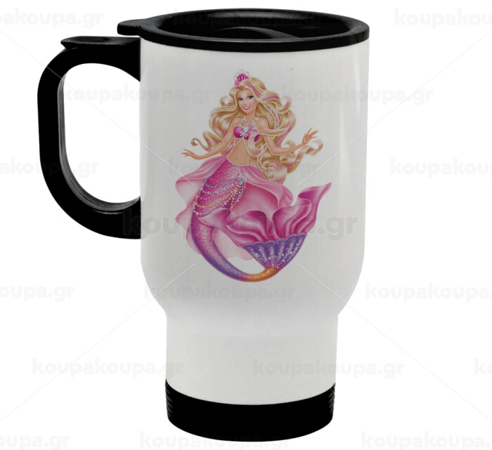 Barbie mermaid blue, Stainless steel travel mug with lid, double wall white 450ml