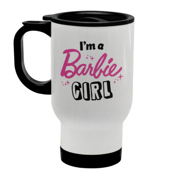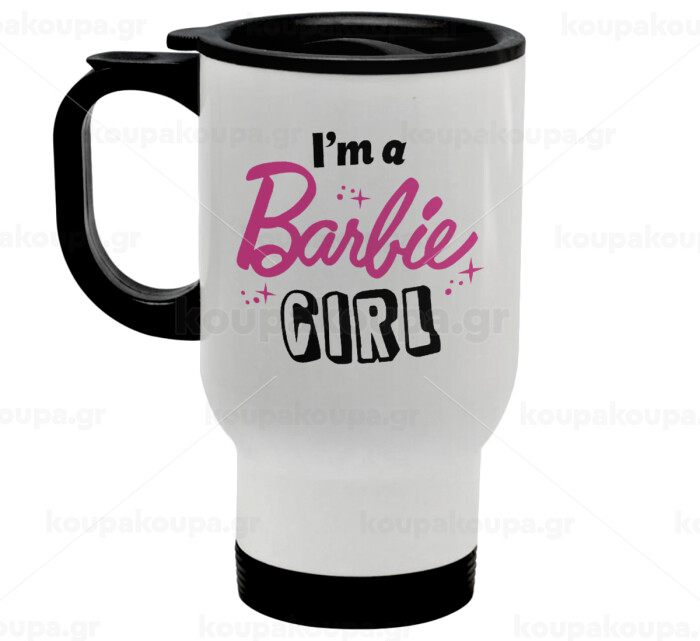 I'm Barbie girl, Stainless steel travel mug with lid, double wall white 450ml