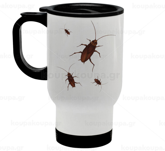 Blattodea, Stainless steel travel mug with lid, double wall white 450ml