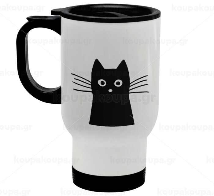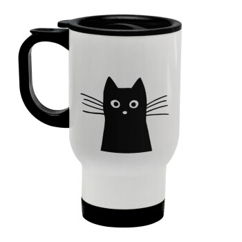 Black Cat, Stainless steel travel mug with lid, double wall white 450ml