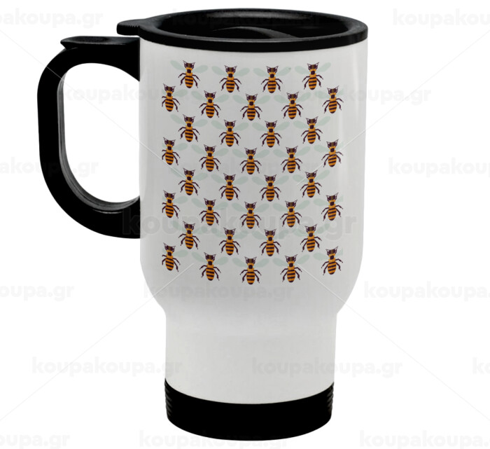 Bee, Stainless steel travel mug with lid, double wall white 450ml