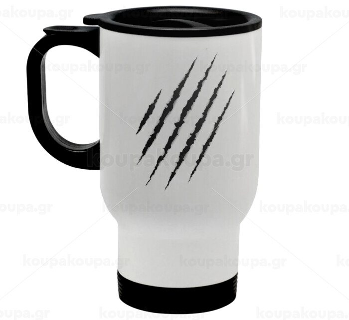 Claw scratch, Stainless steel travel mug with lid, double wall white 450ml