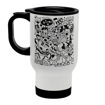 DOG pattern, Stainless steel travel mug with lid, double wall white 450ml