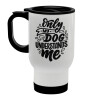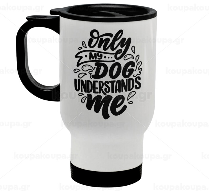 Only my DOG, understands me, Stainless steel travel mug with lid, double wall white 450ml