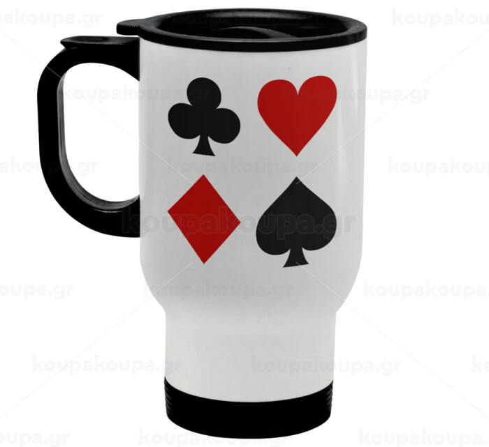 Τραπουλόχαρτα, Stainless steel travel mug with lid, double wall white 450ml