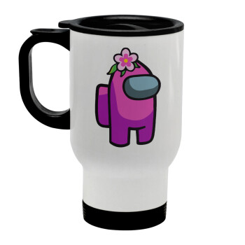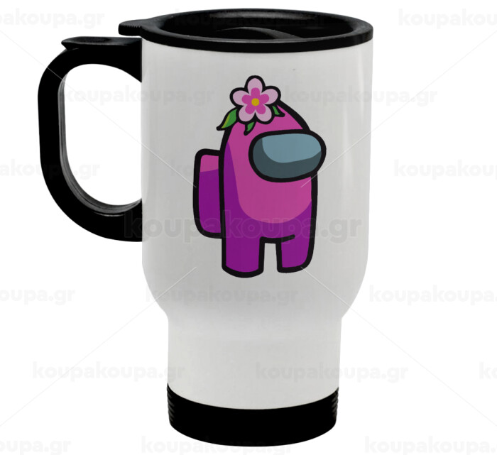 Among US girl, Stainless steel travel mug with lid, double wall white 450ml