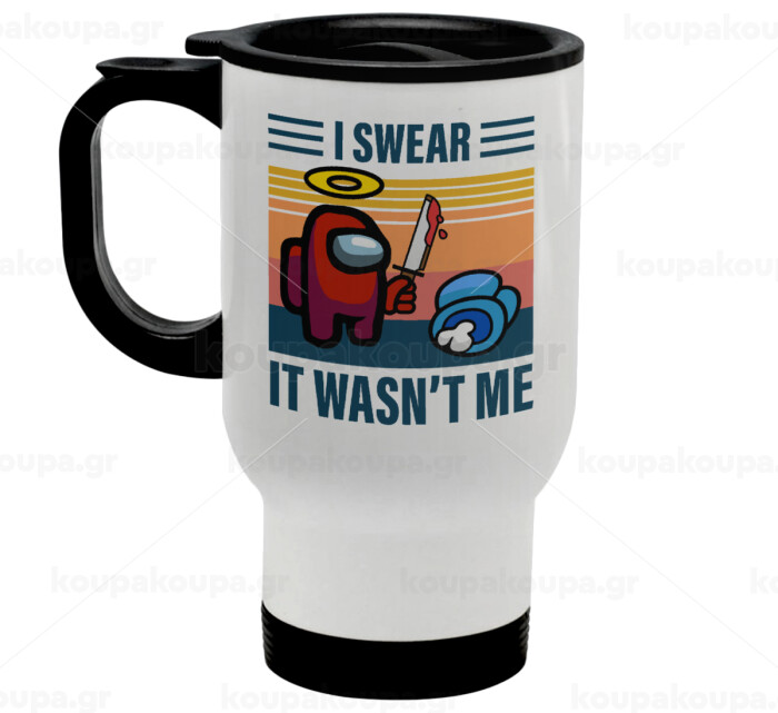 Among us, I swear it wasn't me, Stainless steel travel mug with lid, double wall white 450ml