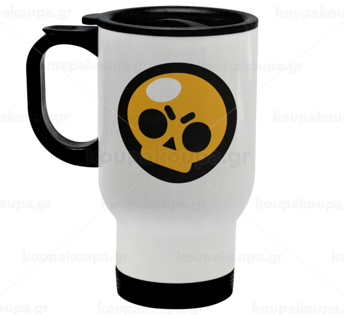 Brawl Stars Skull, Stainless steel travel mug with lid, double wall white 450ml