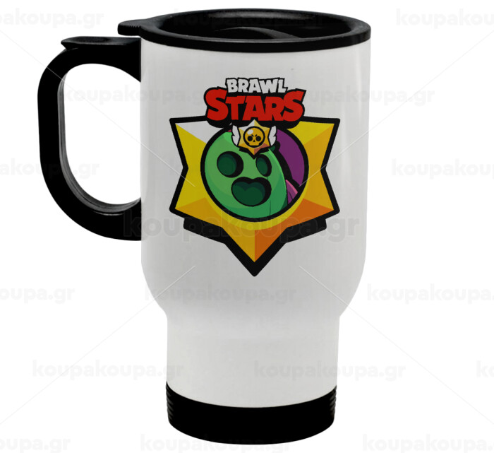 Brawl Stars Spike, Stainless steel travel mug with lid, double wall white 450ml