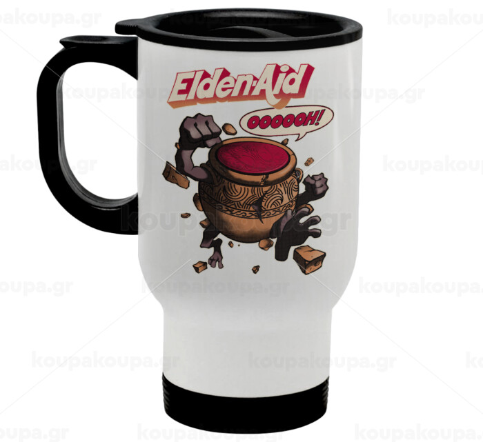 Elden-Aid, Elden Ring inspired , Stainless steel travel mug with lid, double wall white 450ml