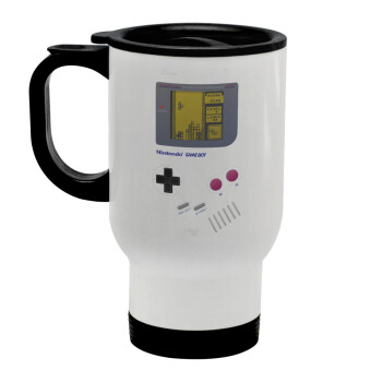 Gameboy, Stainless steel travel mug with lid, double wall white 450ml