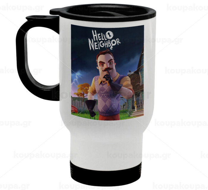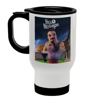 Hello Neighbor, Stainless steel travel mug with lid, double wall white 450ml