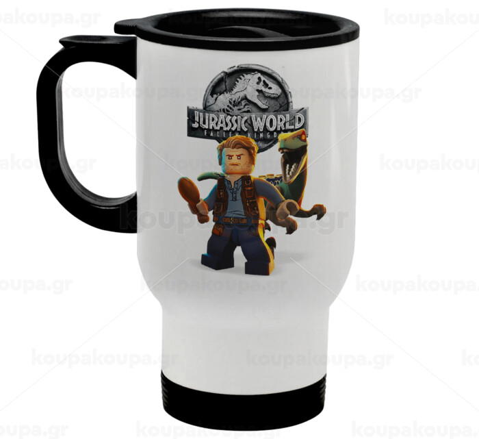 Jurassic world, Stainless steel travel mug with lid, double wall white 450ml