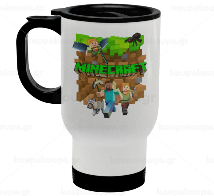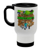 Minecraft characters, Stainless steel travel mug with lid, double wall white 450ml