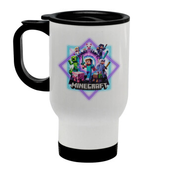 Minecraft Nether Portal, Stainless steel travel mug with lid, double wall white 450ml