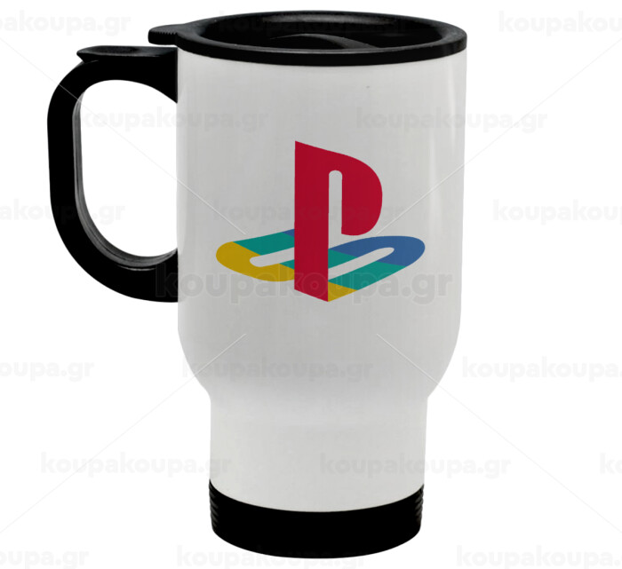 Playstation, Stainless steel travel mug with lid, double wall white 450ml