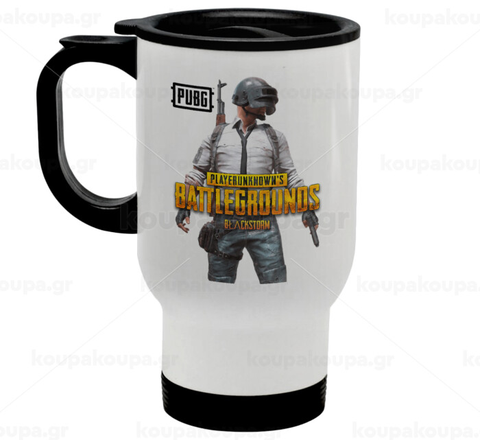 PUBG battleground royale, Stainless steel travel mug with lid, double wall white 450ml