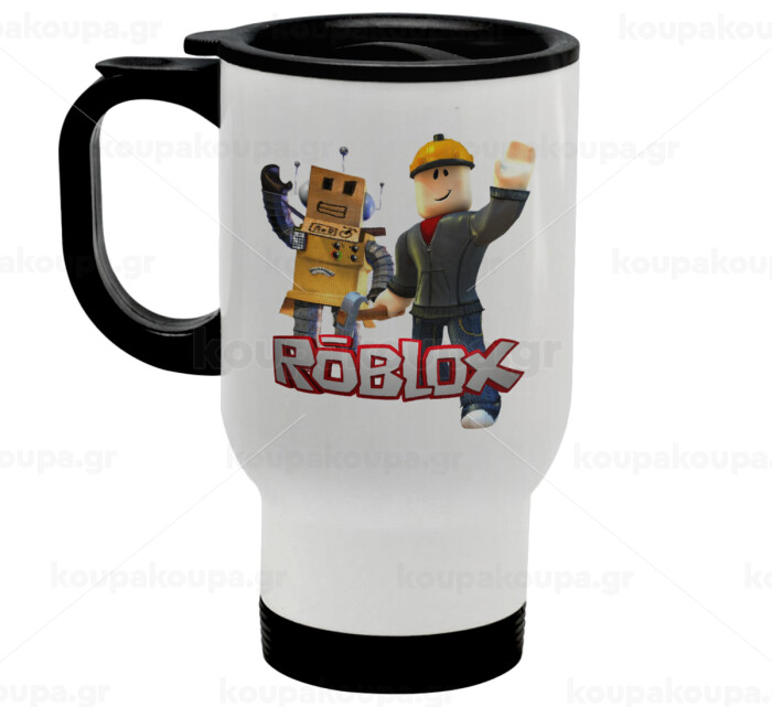 Roblox, Stainless steel travel mug with lid, double wall white 450ml