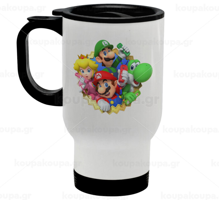 Super mario and Friends, Stainless steel travel mug with lid, double wall white 450ml