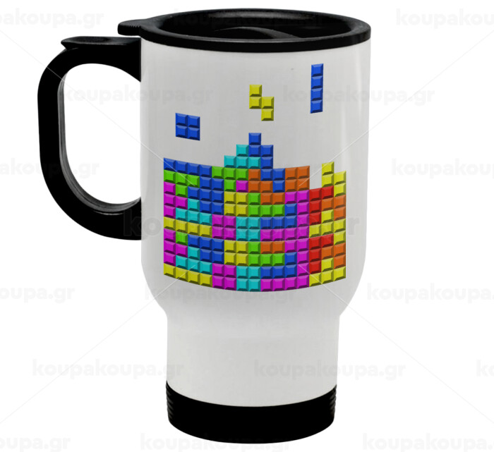 Tetris blocks, Stainless steel travel mug with lid, double wall white 450ml