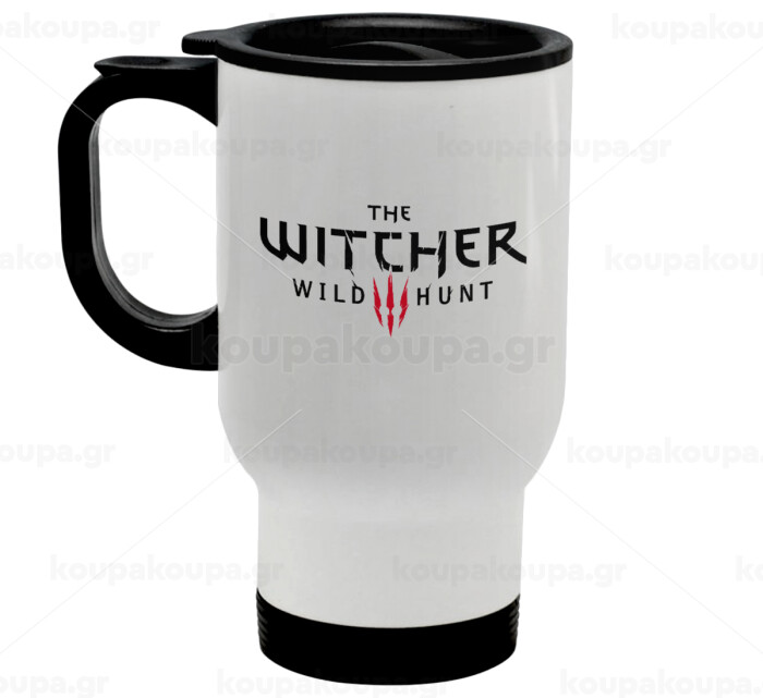 The witcher III wild hunt, Stainless steel travel mug with lid, double wall white 450ml