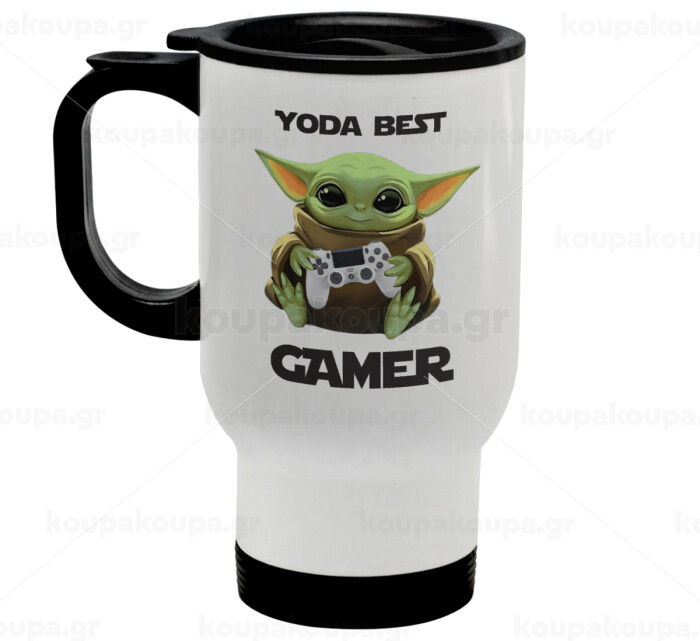 Yoda Best Gamer, Stainless steel travel mug with lid, double wall white 450ml