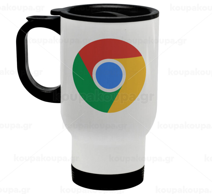 Chrome, Stainless steel travel mug with lid, double wall white 450ml