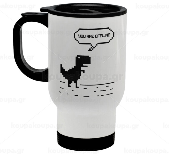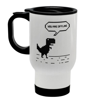 You are offline dinosaur, Stainless steel travel mug with lid, double wall white 450ml