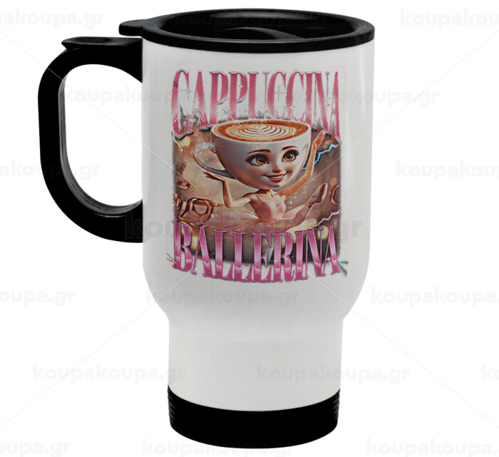 BALLERINA CAPUCHINA FUNK, Stainless steel travel mug with lid, double wall white 450ml