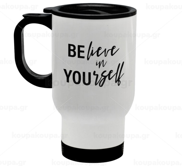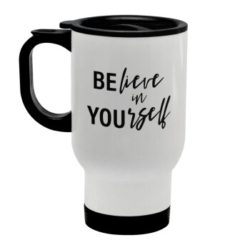 Believe in your self, Stainless steel travel mug with lid, double wall white 450ml