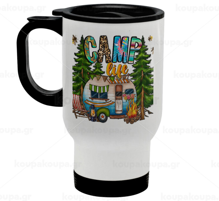 Camp Life, Stainless steel travel mug with lid, double wall white 450ml