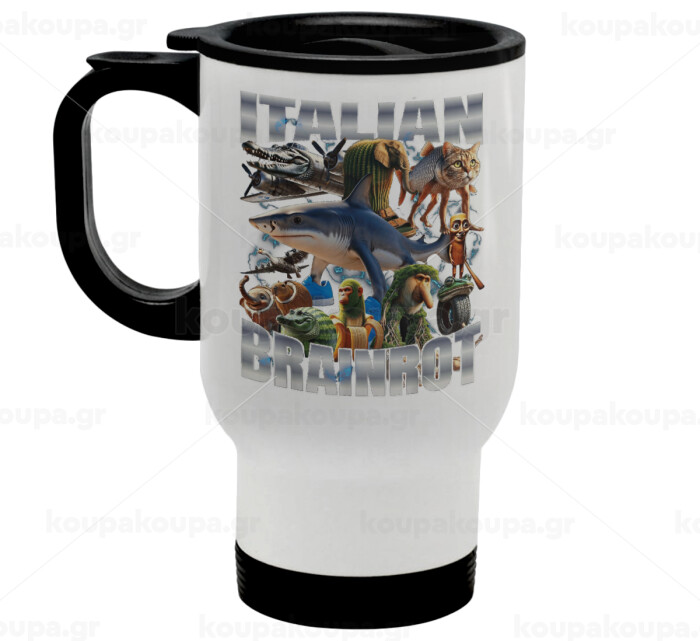 Italian Brainrot, Stainless steel travel mug with lid, double wall white 450ml