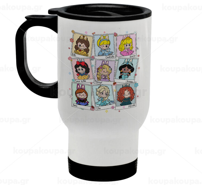 Labubu characters, Stainless steel travel mug with lid, double wall white 450ml
