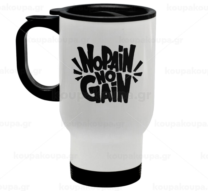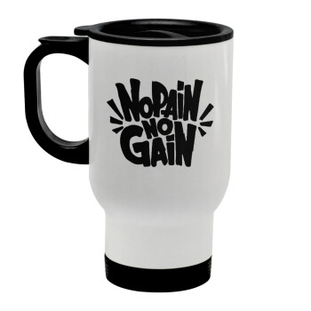 No pain no gain, Stainless steel travel mug with lid, double wall white 450ml