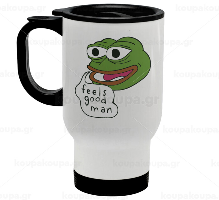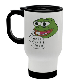 Pepe the frog, Stainless steel travel mug with lid, double wall white 450ml