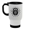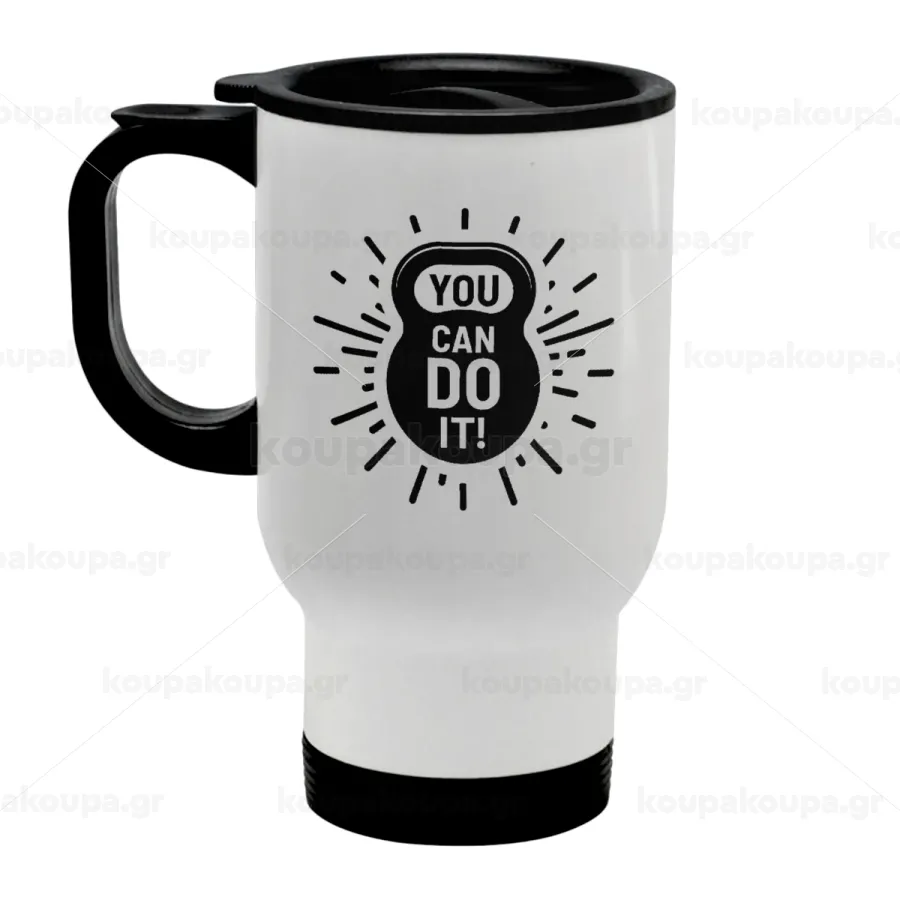 You can do it, Stainless steel travel mug with lid, double wall white 450ml