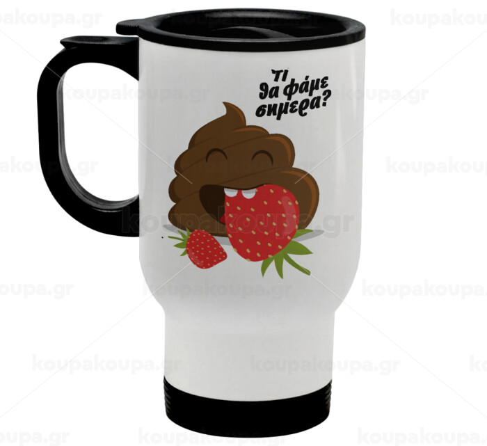 Τι θα φάμε σημερα???, Stainless steel travel mug with lid, double wall white 450ml