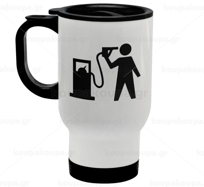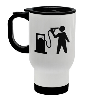 Fuel crisis, Stainless steel travel mug with lid, double wall white 450ml