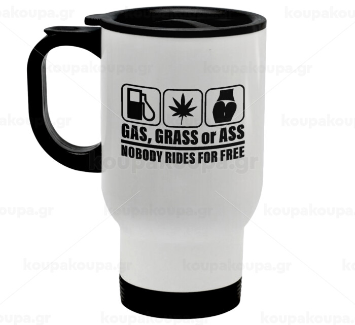 Gas, Grass or Ass, Stainless steel travel mug with lid, double wall white 450ml