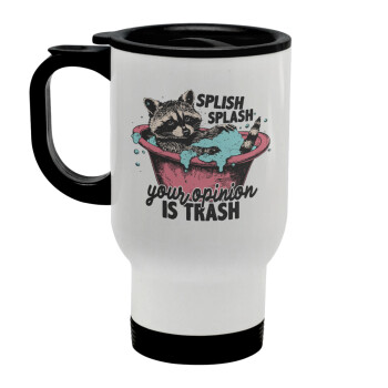 Splish splash your opinion is trash, Stainless steel travel mug with lid, double wall white 450ml