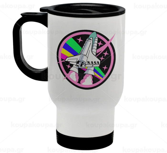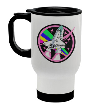 NASA pink, Stainless steel travel mug with lid, double wall white 450ml
