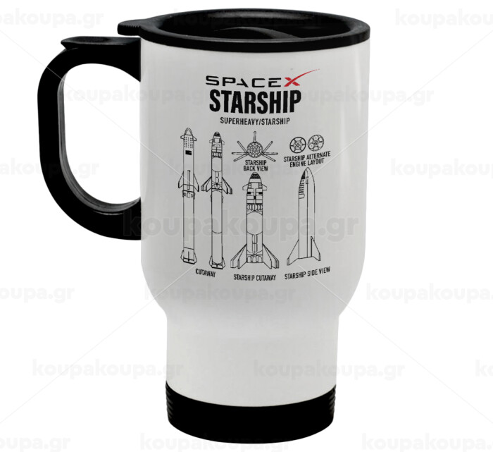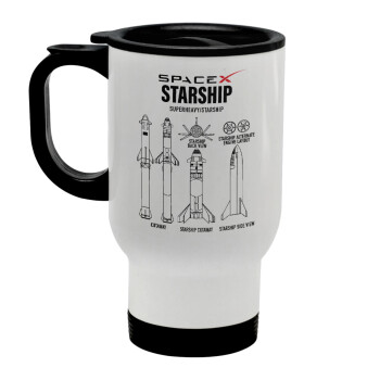 Space X, Stainless steel travel mug with lid, double wall white 450ml