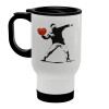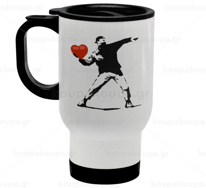 Banksy (The heart thrower), Stainless steel travel mug with lid, double wall white 450ml