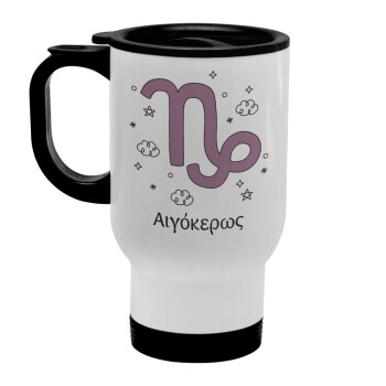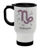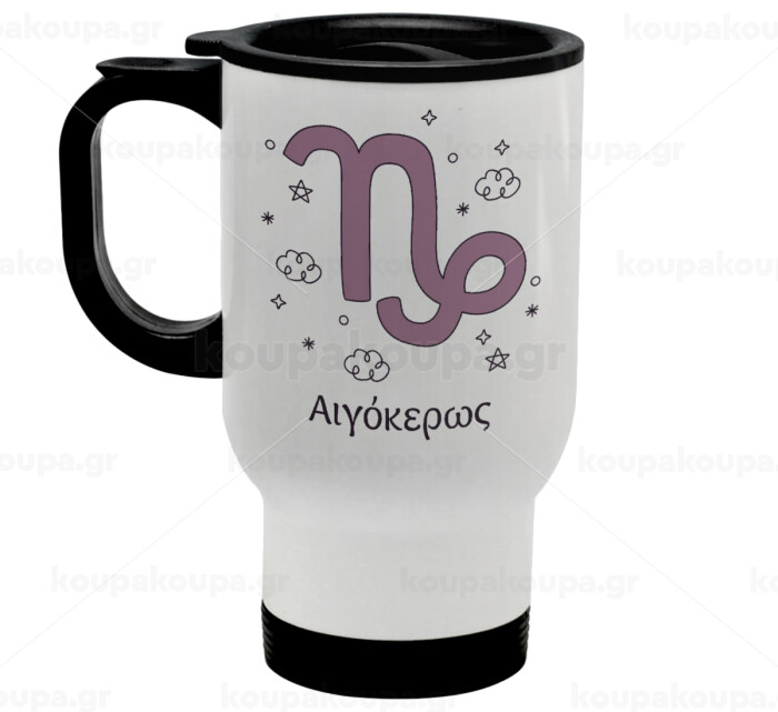 Ζώδια Αιγόκερως, Stainless steel travel mug with lid, double wall white 450ml