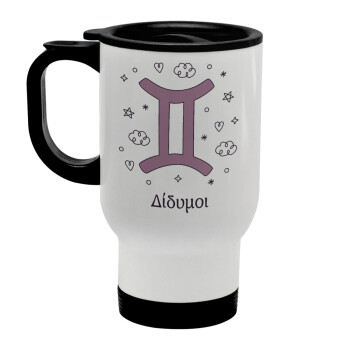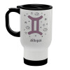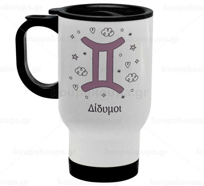 Ζώδια Δίδυμοι, Stainless steel travel mug with lid, double wall white 450ml