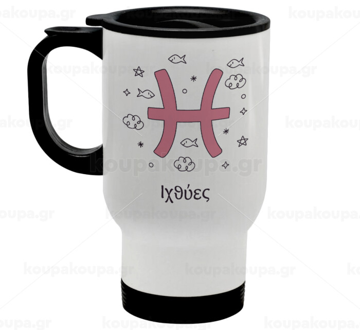 Ζώδια Ιχθύες, Stainless steel travel mug with lid, double wall white 450ml