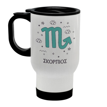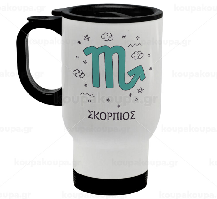 Ζώδια Σκορπιός, Stainless steel travel mug with lid, double wall white 450ml
